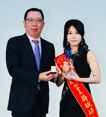 精聯保精董事長李傳晧(左)和榮譽會長黃秋霞(右)頒贈會長獎給詮貿管理處經理王麗寬(中)。